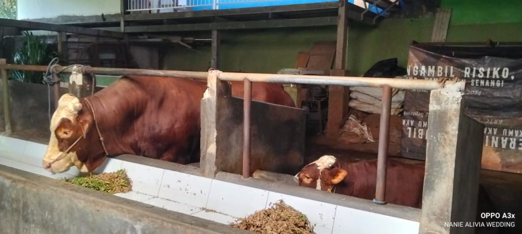 Satu Ekor hewan qurban berupa sapi (Jenis Lemosin atau Cimental Cross) tersebut, sebagaimana disampaikan salah seorang peternak beratnya kurang lebih 1,2 Ton dan akan diserahkan kepada DKM Masjid Agung Kota Cimahi untuk disembelih pada hari raya Idul Adha.