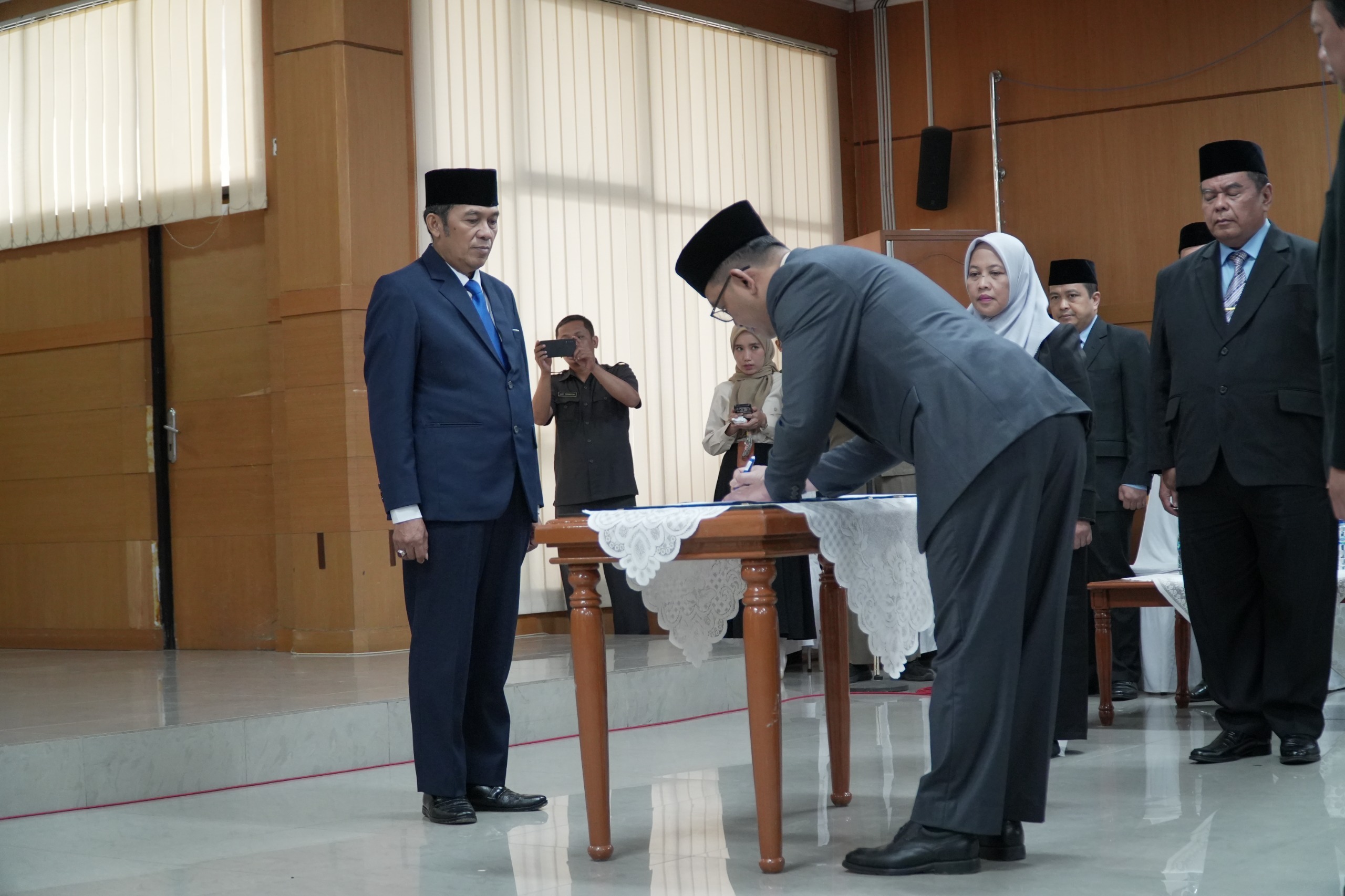 Wali Kota Cimahi Ngatiyana memimpin langsung pelantikan dua pejabat pimpinan tinggi pratama, yakni Kepala Dinas Kependudukan dan Pencatatan Sipil Tri Lospala Candra, S.STP. serta Inspektur Kota Cimahi Risnandar, S.E., disertai 13 Pejabat Fungsional dan satu Kepala Sekolah nonformal SKB. Seluruh tahapan pengisian jabatan telah melalui prosedur seleksi terbuka, transparan, akuntabel, serta sesuai ketentuan peraturan perundang-undangan.