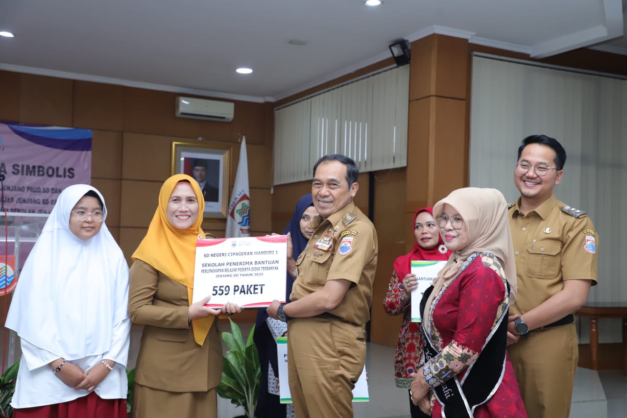 CIMAHI, DISKOMINFO. Pemerintah Kota Cimahi menyalurkan bantuan biaya pendidikan, perlengkapan belajar, serta pakaian seragam sekolah bagi peserta didik jenjang PAUD, SD, dan SMP Tahun Anggaran 2025. Penyerahan bantuan dilakukan secara simbolis pada Senin (15/12) di Aula A Pemerintah Daerah Kota Cimahi sebagai bagian dari upaya memastikan akses pendidikan yang inklusif dan berkeadilan bagi seluruh anak.